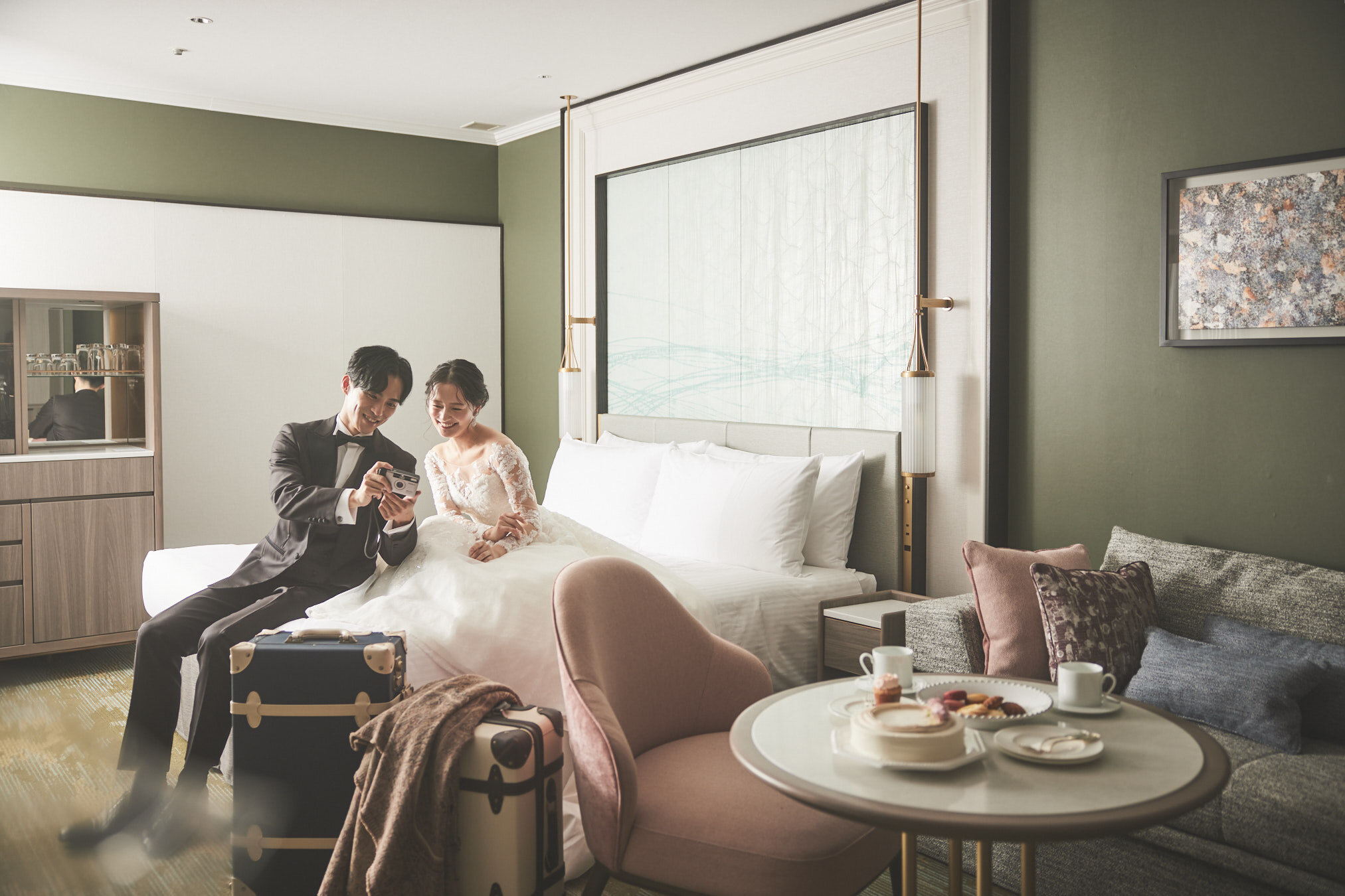 リーガロイヤルホテル大阪のチャペルフォトプランには撮影当日、おふたりのご宿泊(朝食付き)が特典としてついています。
