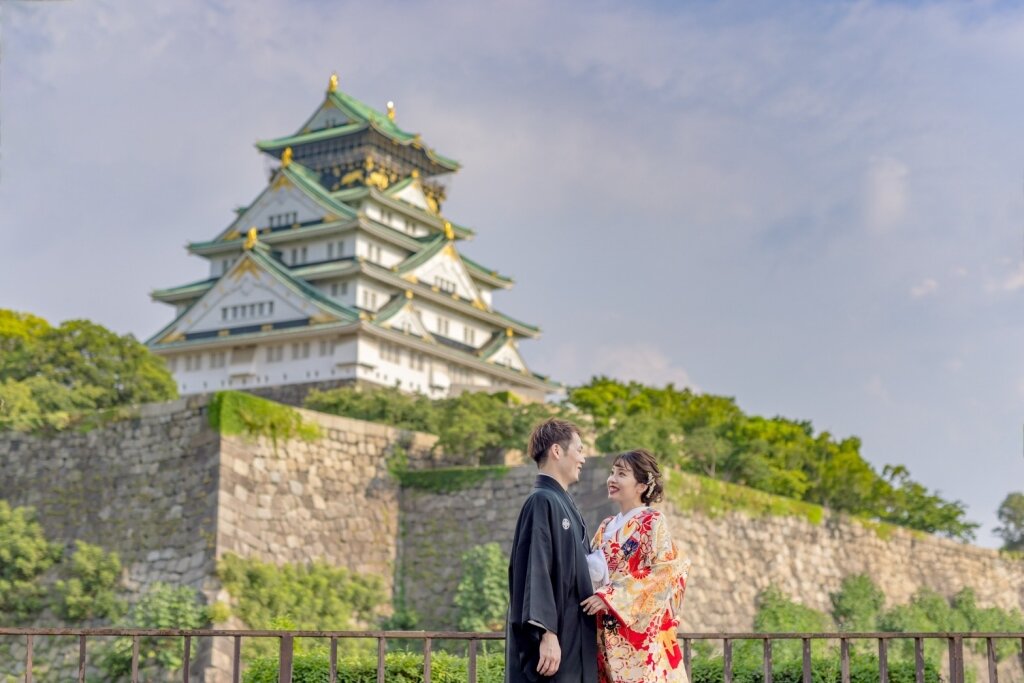大阪城の魅力は、天守閣をはじめとする歴史建造物はもちろん、周囲の豊かな自然。1000本を超えるの梅の花が咲き誇る梅林、約300本の桜は人気の撮影スポット。荘厳なお城を背には和装姿が似合います。特に桜のシーズンは撮影日が限られるため、気になる方はお早めにご相談ください。