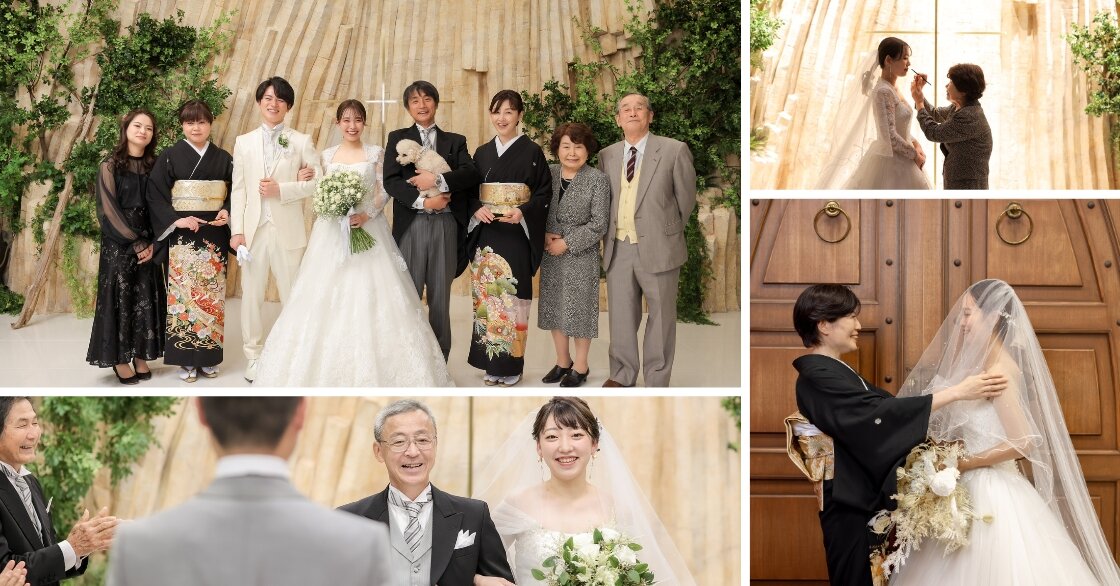 ご列席の衣装をご用意されて、結婚式そのものの雰囲気で臨まれる場合も。