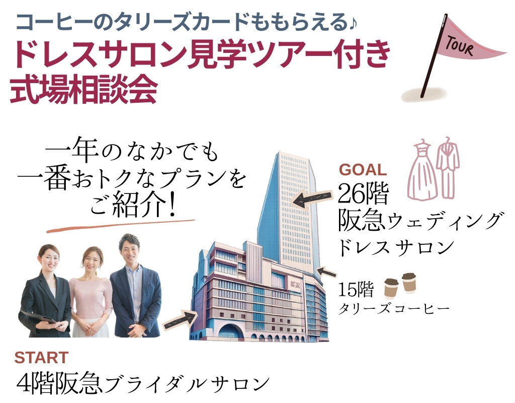阪急ブライダルサロンにて期間中、式場相談をされた方限定でドレスサロン見学ツアーにご案内いたします。