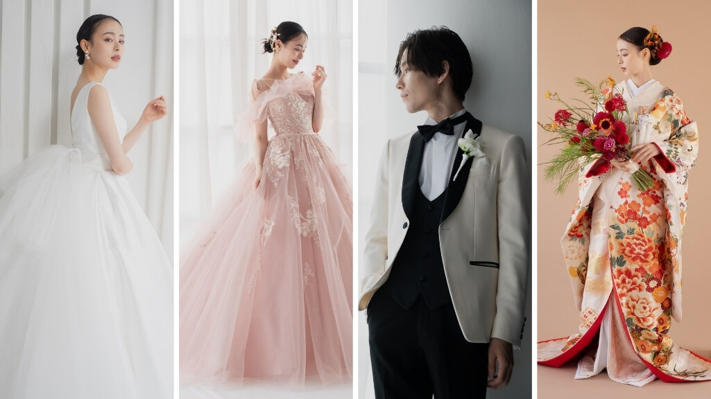 新郎様1点と新婦様2点の衣装がプラン。あらかじめお色直しの衣装も含まれているので安心です。
