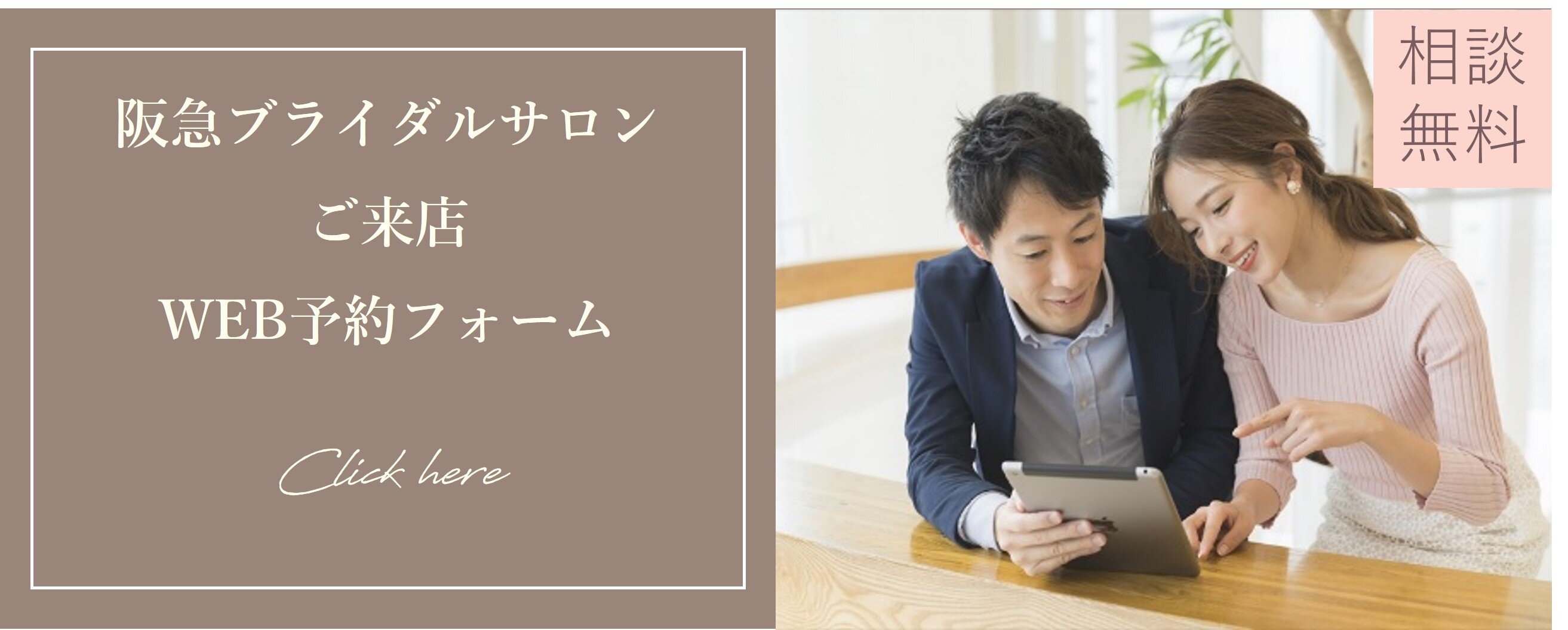 阪急ブライダルサロンで無料でご案内いたします。