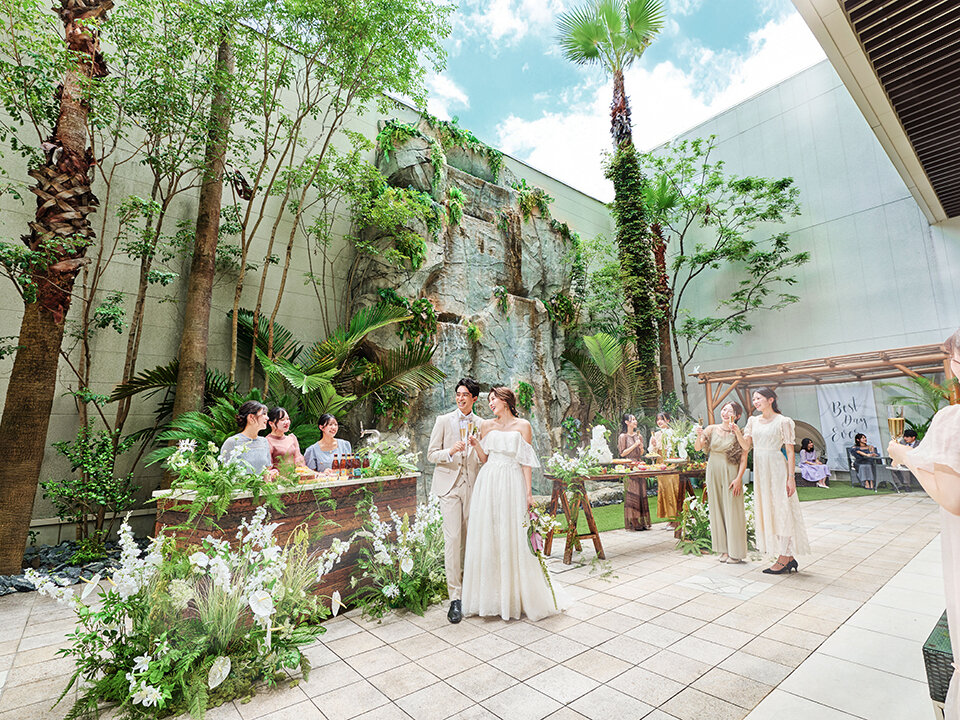 都心にいながらリゾート気分に浸れるパーティ会場が3タイプ。それぞれに専用のテラスやガーデンが付いているので開放感も満点。乾杯やケーキカット、デザートブッフェなど、自然の中で思う存分楽しめます。