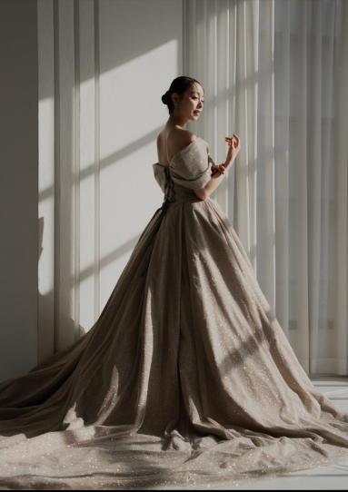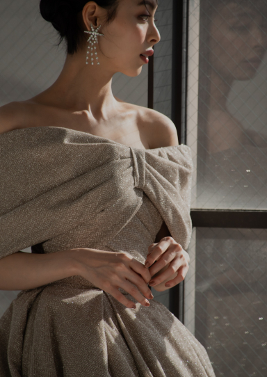 | 詳細 | トルコ製の高級グリッターを使用した贅沢な一着。 360度の上品な煌めきが花嫁様をより輝かせ、動く度に優雅な気分に。 |