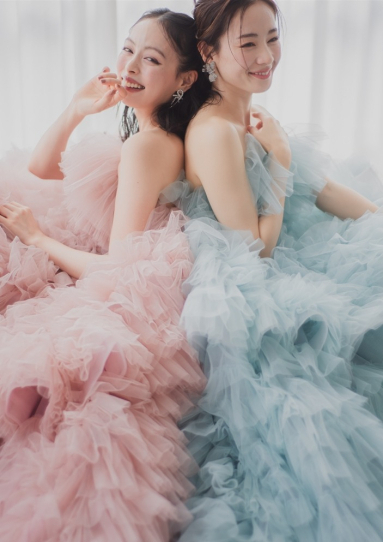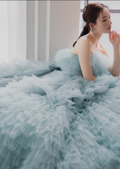 | 詳細 | オリジナルブランド「楚々として。」のカラードレスです。 チュールの重ねにこだわり、ライトブルーのグラデーションのニュアンスを大事にした1着。 ティアードの重なりが柔らかく揺れ動き、ふわふわのボリューム感はまるで愛らしいうさぎのよう。 ボリューミーなデザインですが、ウエストラインがしっかり出るよう美しいシルエットにこだわりました。 甘くなりがちなフリルも黒のサッシュリボンで洗練された印象に。 お色違いでピンクのご用意もございます。 |