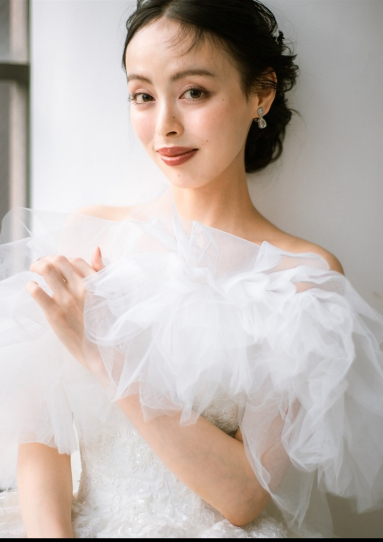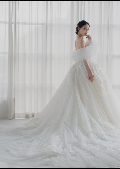 | 詳細 | 贅沢にチュールとグリッターを使用し、ボリューミーなスカートを表現。繊細なビージングを贅沢にあしらったレースが流れるように、 咲き誇る様に使用したプレミアムな世界観を感じるドレスに。 胸元のケープは2種類から選んでいただけます。 |