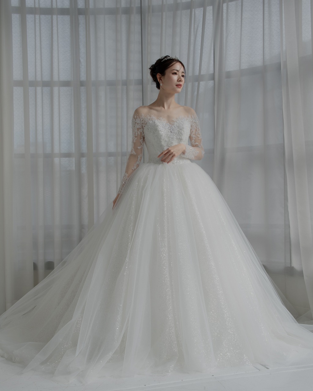 ・チャペル や大階段など → ロングトレーンが映える・レストラン → 軽やかな印象が合う